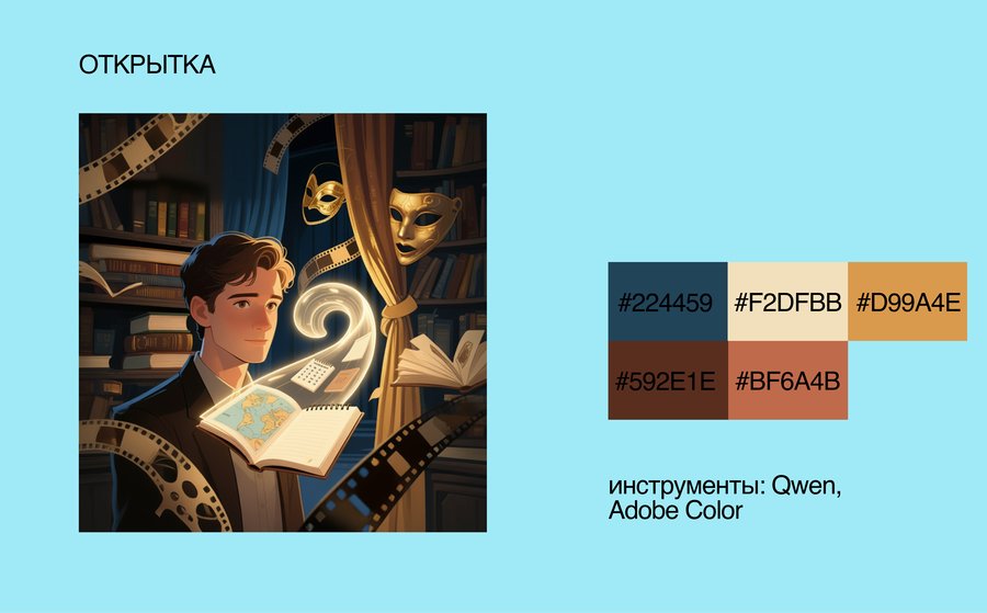 Промт: make an illustration for a postcard as a merch of the cultural center Another Life. My project is the cultural center «Another life», which combines 3 ways to spend time: