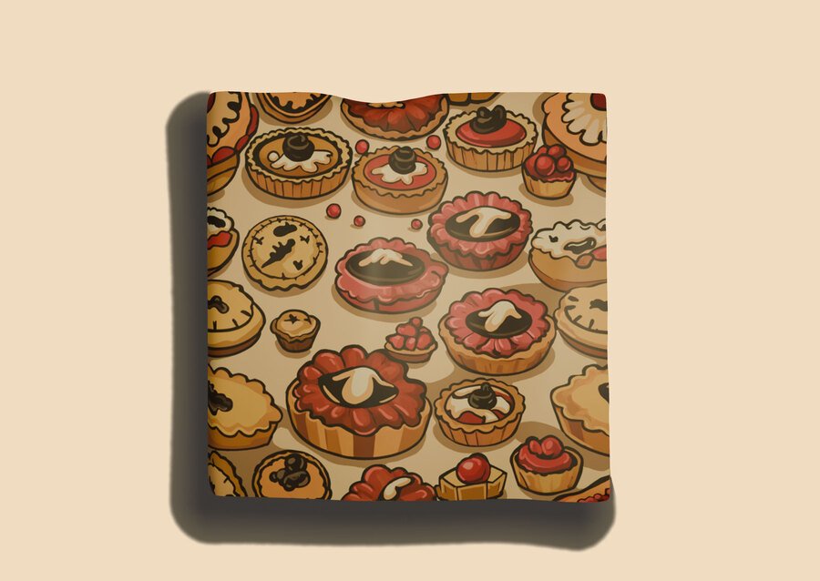 Промт: A stylised cartoon pies pattern. reference image: https://shop.artz.work/card/27a05a1e93cb447fb7dd7e4c2bb905d4 Использованные инструменты: Leonardo AI