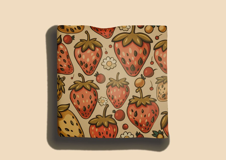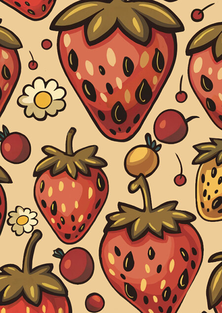 Промт: A stylised cartoon strawberry pattern. image reference: https://shop.artz.work/card/32c813dad8ed4baca1c1fa4d7727634b Использованные инструменты: Leonardo AI
