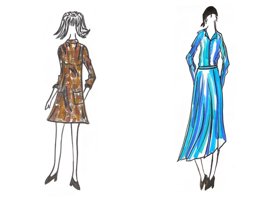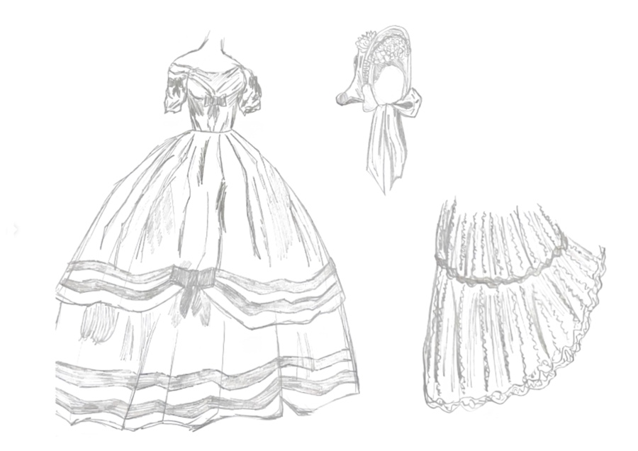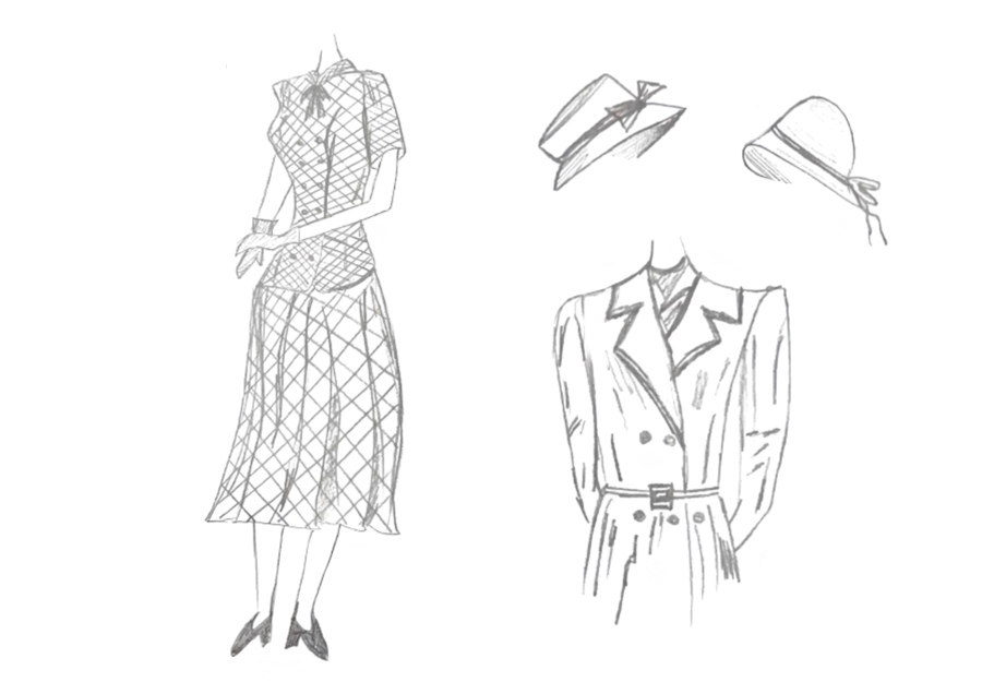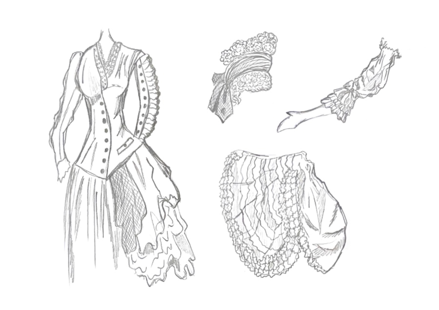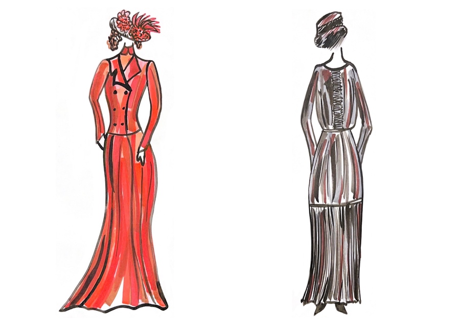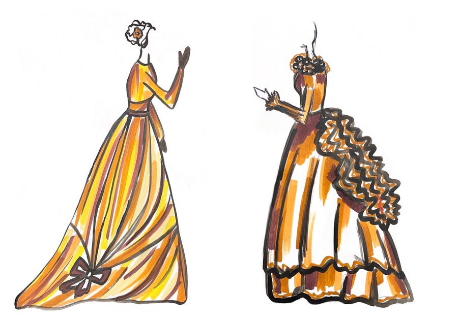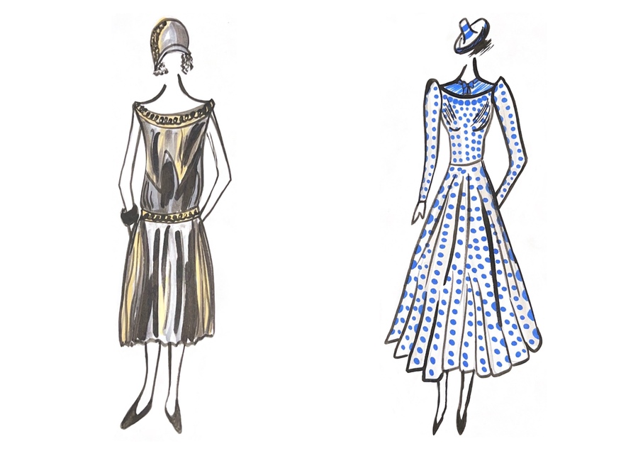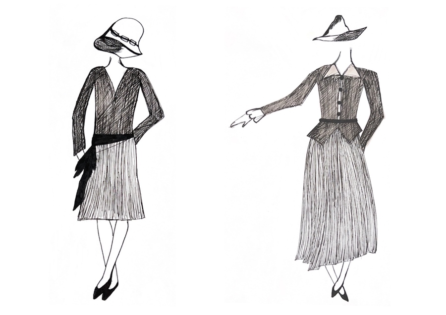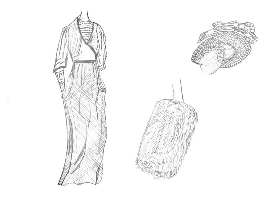 1-й блок направлен на изучение и прорисовку костюма или предмета костюма по КП в различных графических приемах, стилях, идеях