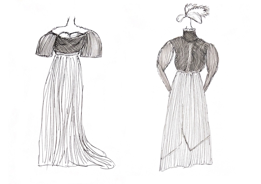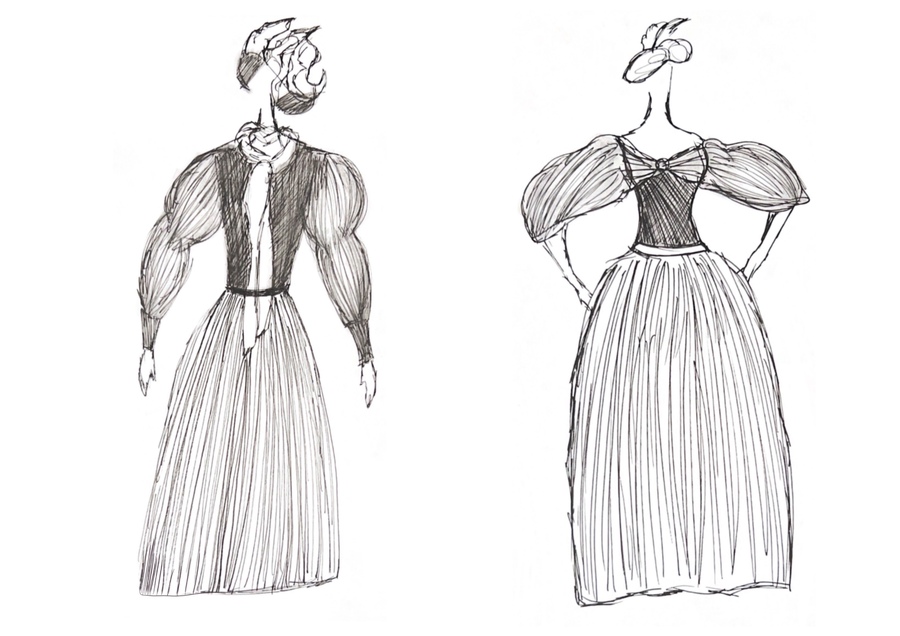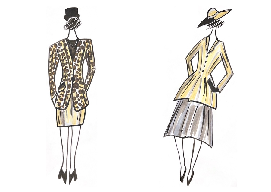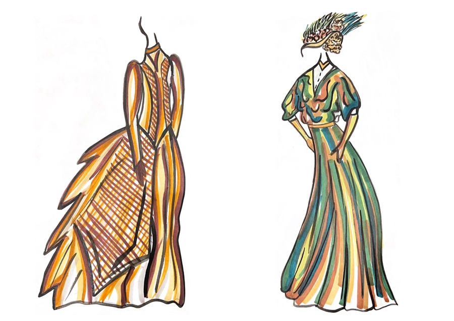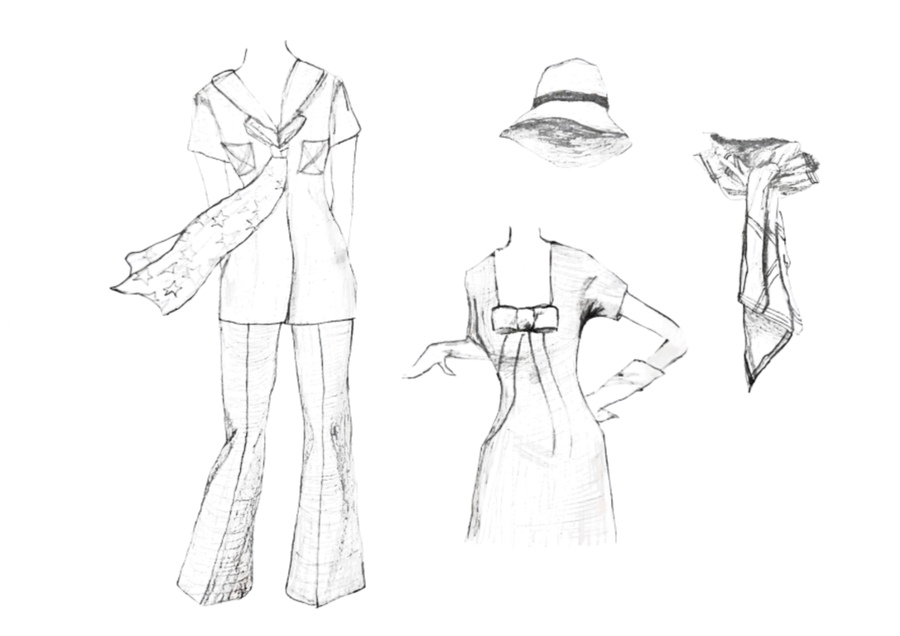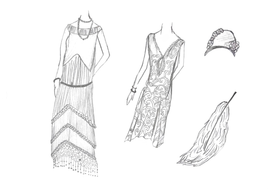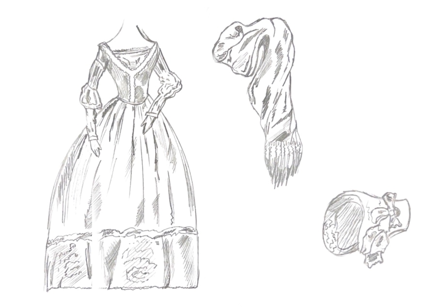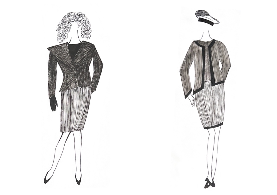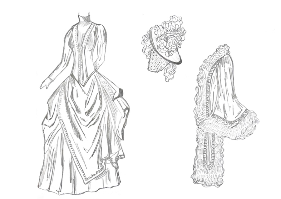 1-й блок направлен на изучение и прорисовку костюма или предмета костюма по КП в различных графических приемах, стилях, идеях