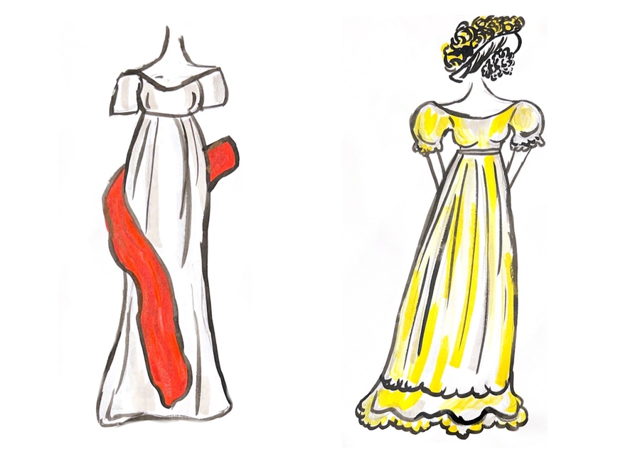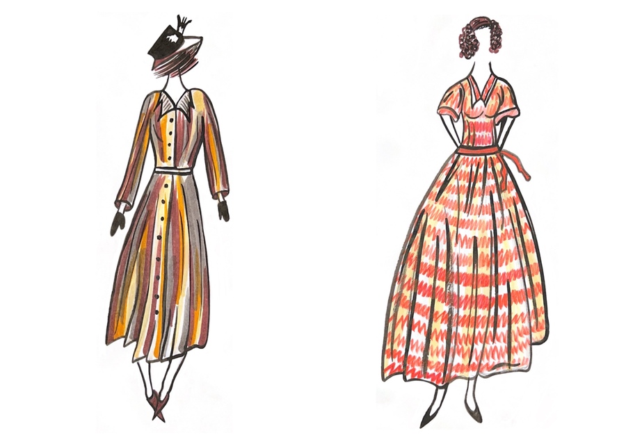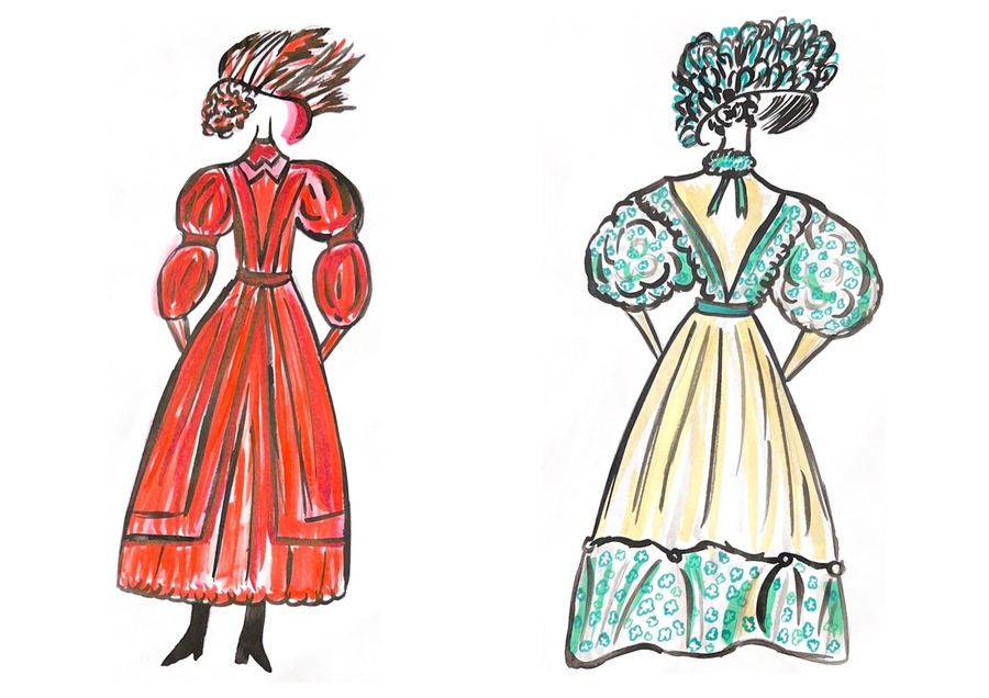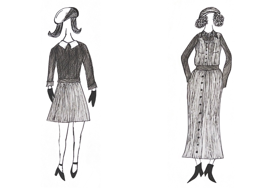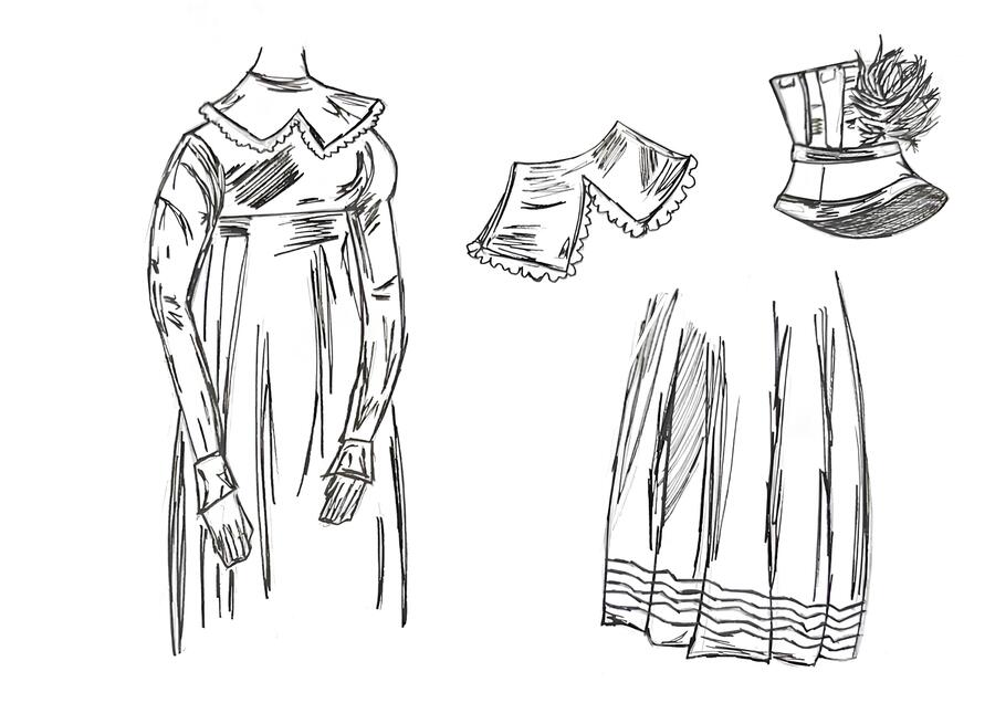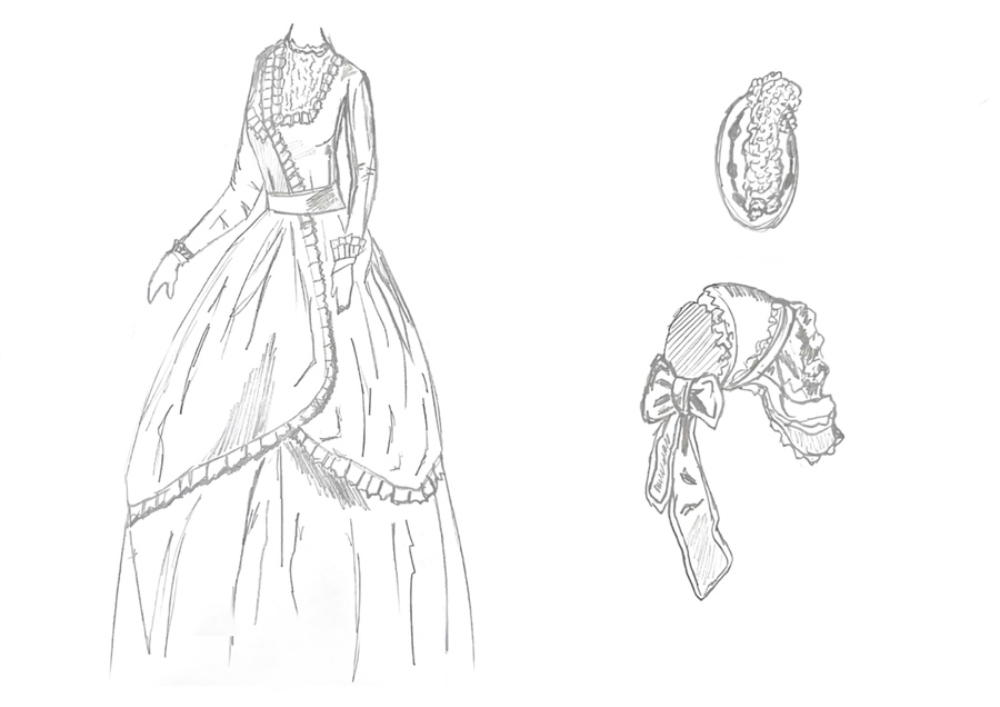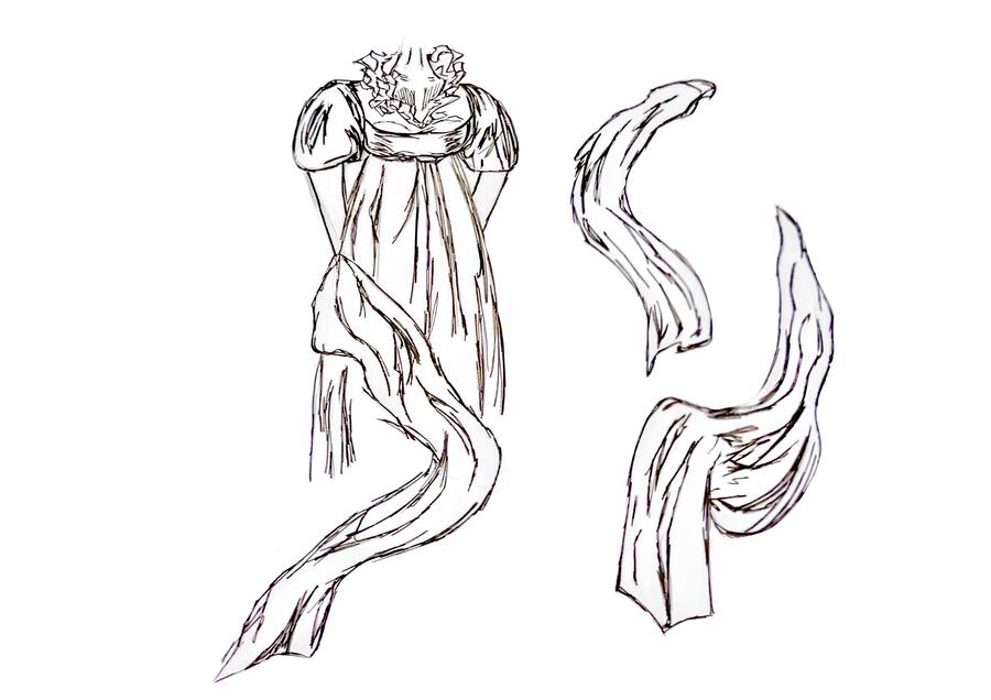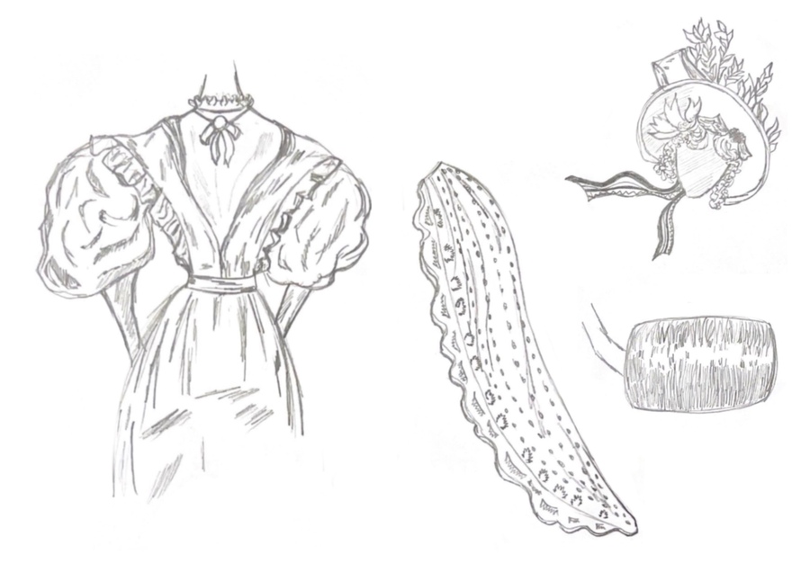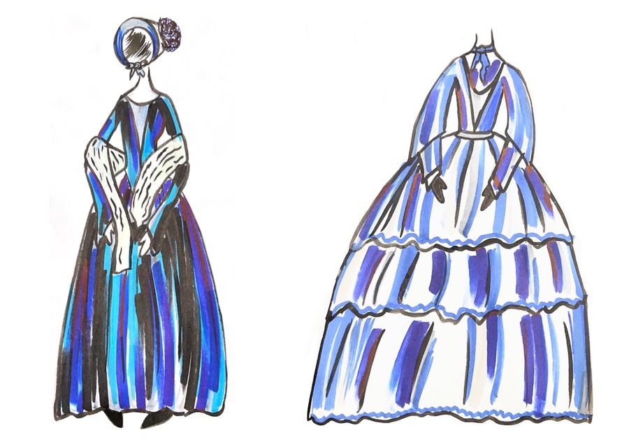 1-й блок направлен на изучение и прорисовку костюма или предмета костюма по КП в различных графических приемах, стилях, идеях