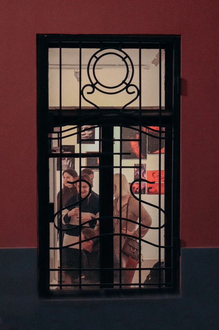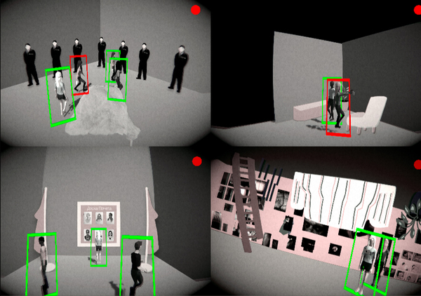Основа — система видеоанализа, применяемая в музеях. Однако, периодически камера переключается на какие-то частные пространства, такие как квартира, а потом мы снова переключаемся в публичный режим: трамвай, выставка…