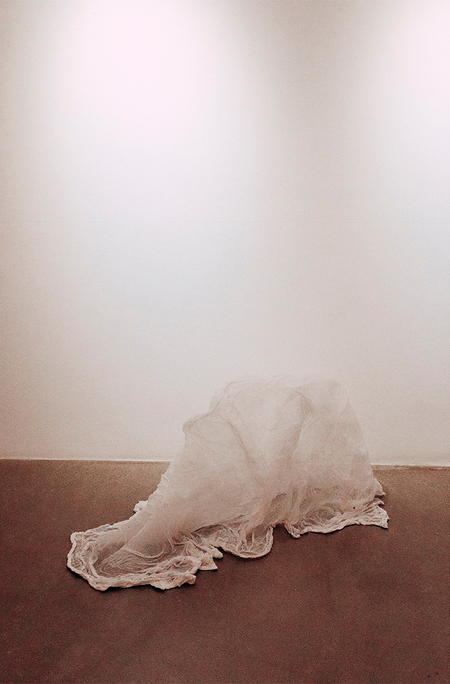 В проекте «Анатомия ткани» создается хрупкое антропоморфное тело в процессе обозначения своей идентичности — суррогат «объемного я». Полупрозрачная, спадающая складками ткань, сливается с телом, подобно коже. Отделенная от плоти оболочка скрывает внутренние процессы организма, которому принадлежала. Сакральное в обтекаемой и безличной форме впоследствии превращается в новый принцип чистой автономии. Несуществующее тело открыто к самодостаточному существованию, ощущениям, касаниям, прикосновению взгляда зрителя.