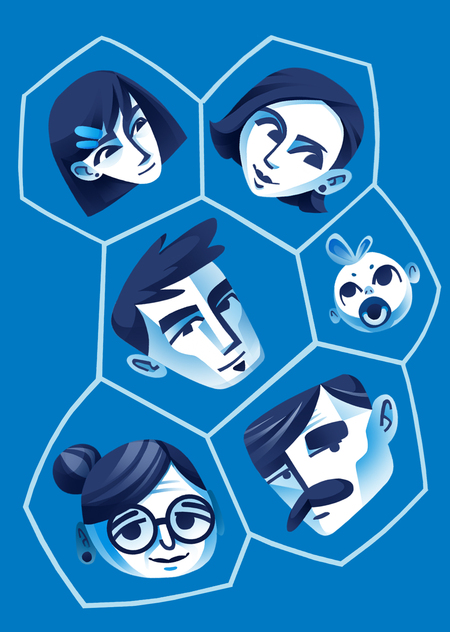 Носители могут быть в разной степени проработаны — простой паттерн; соединение паттерна и ячеек эпителия; отдельные члены семьи (каждый из которых может отвечать за отдельный носитель); вся семья. В этом проекте я представила несколько вариаций развития внешнего вида носителей.