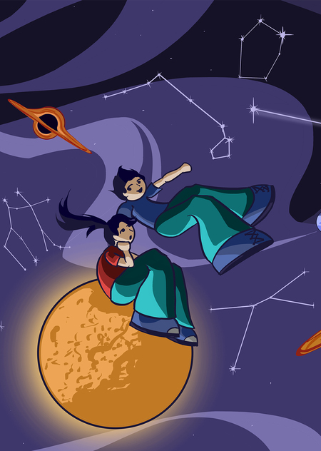 Серия плакатов, посвящённых астрономии. Цель проекта — передать детское любопытство и увлечение наукой. Каждая иллюстрация отражает моменты открытий и восхищения, когда дети знакомятся с просторами Вселенной.