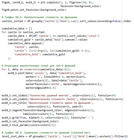 Диаграмма размаха выявляет тактические сходства между фракциями. Несмотря на высокий выброс Neutral, медианное значение схоже с остальными фракциями, что дает нам информацию о эксклюзивном случае высоких параметров одного-двух юнитов во фракции, за счет чего некоторые данные выскакивают в этом, и других графиках. Fortress имеет самую низкую медиану (6.0) и минимальный разброс — тактика упорной обороны.