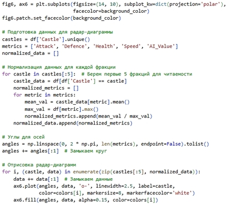 Радар-диаграмма подтверждает концепцию асимметричного баланса между характеристиками и симметричного между фракциями. Фракциональное равенство придает игре баланс между игроками, где каждая фракция занимает свою тактическую нишу без явного доминирования. Асимметричность характеристик же развивает стратегическую концепцию, где каждый ресурс не равен другому ресурсу, что порождает интересные выборы в игре.