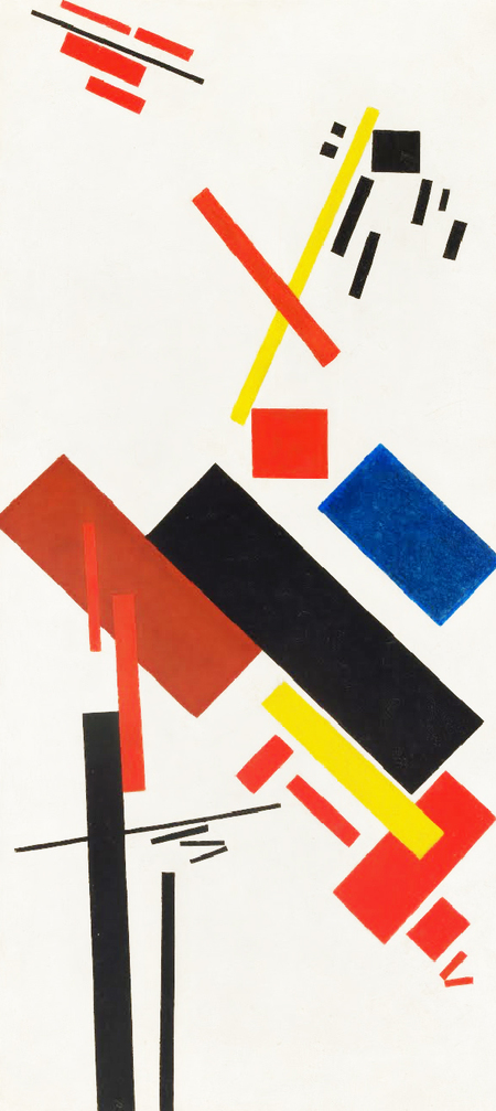 Также важно здесь упомянуть о Малевиче, который в это время продолжает развивать свои супрематические композиции. Но его работы в большей степени — про статику, в которой формы существуют отдельно друг от друга, например «Красный квадрат», «Супрематическая композиция». Попова, напротив, создаёт динамические композиции, в которых формы как будто взаимодействуют друг с другом внутри холста.