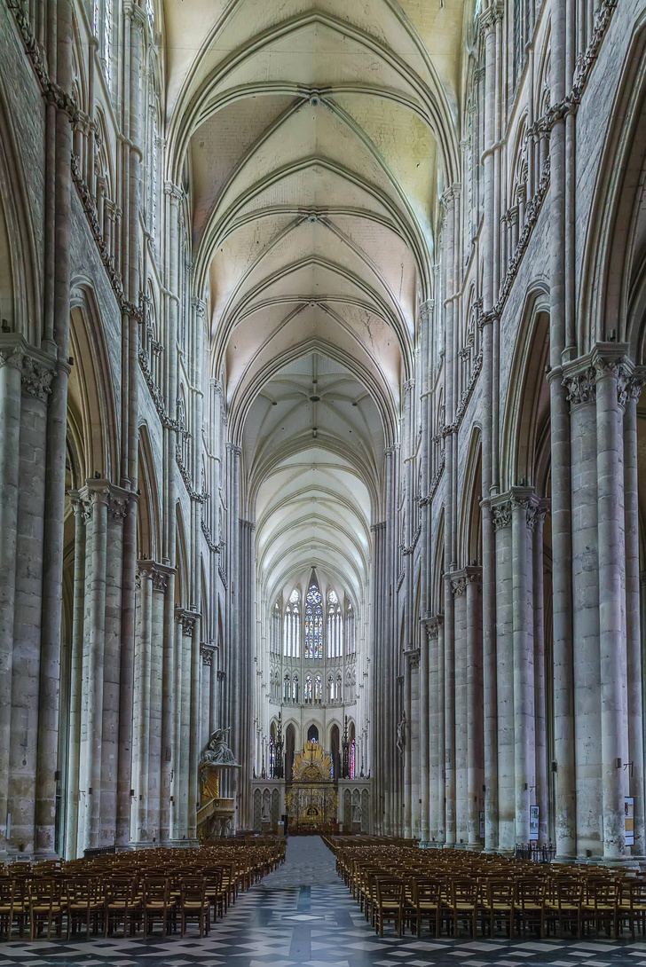 В готическом искусстве выражается мировоззрение человека того времени, проникнутое мистической идеей о вознесении души к небу, чему способствует мотив стремления ввысь, по большей части выраженный в архитектуре готических соборов. Широкое использование пирамид и конусов, высокие башни и шпили, тонкие вертикальные линии и множество резных деталей применялись для создания эффекта высоты и тяготения собора к неземному, божественному миру.