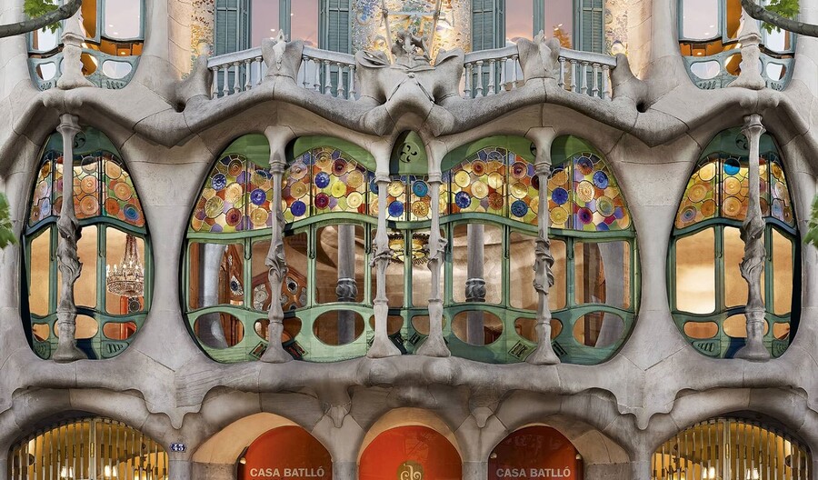 Полное отсутствие прямых линий, растительные и антропоморфные мотивы, витражи — все это сочетается в архитектуре Каса-Батльо. Существует мнение о том, что дом отражает легенду о Святом Георгии, повергающем мечом дракона. И действительно, крыша Каса-Батльо напоминает мифического персонажа, трубы дымохода — рукоятку клинка с георгиевским крестом, а небольшие галереи — кости многочисленных жертв дракона. Так в Барселоне здание называют «домом костей».