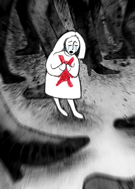 В своей работе я хотела передать именно это ощущение трансформации страха по мере взросления — как из вымышленного фантастического это чувство приобретает очертания реального.