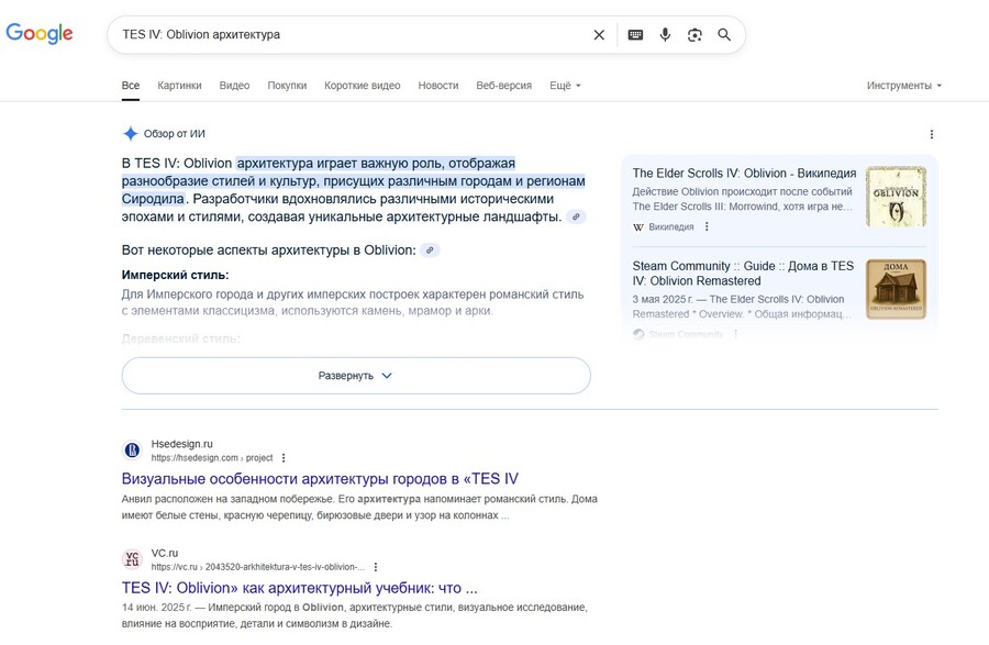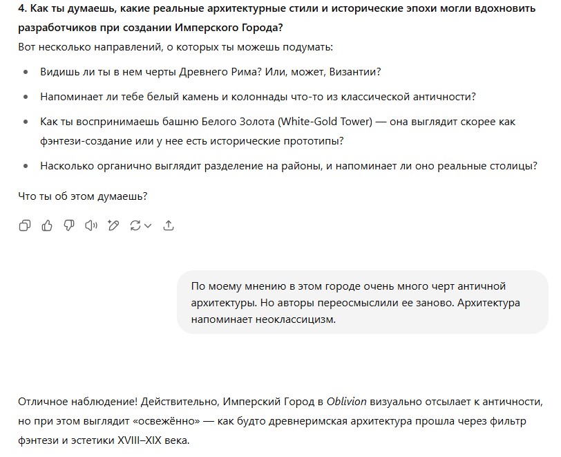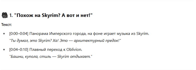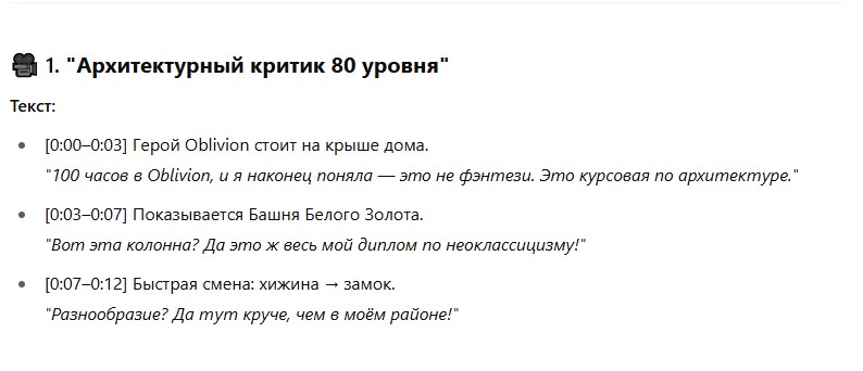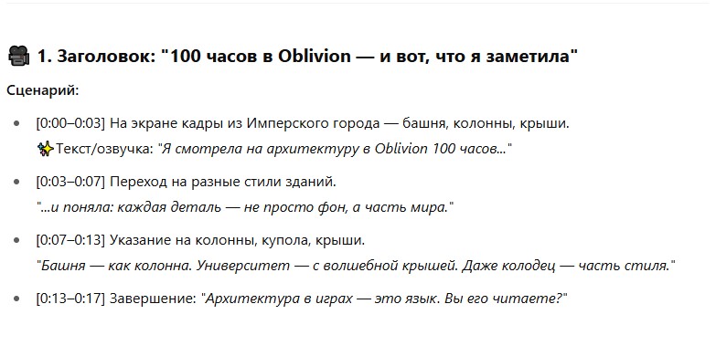 В этом модуле я использовала искусственный интеллект для продвижения личного бренда в рамках курса «ИИ для построения личного бренда и контент-маркетинга». Я изучаю игровой дизайн и у меня, как и у многих игроков, есть та самая родная и близкая сердцу игра. Поэтому для итогового проекта я взяла одно из визуальных исследований, посвященных архитектуре городов в «TES IV: Oblivion».