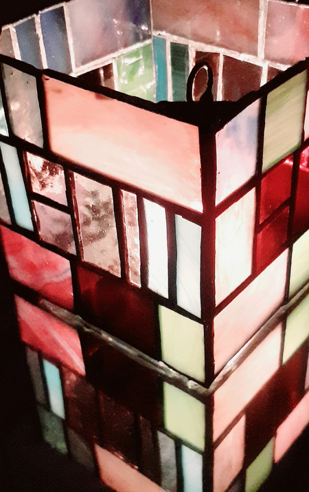 Темой моих работ стали воспоминания о времени, проведённом с семьёй в родном доме, за долгими поездками в плацкарте с железным стаканом чая и бутербродами. В рамках задания были созданы витражи «Панелька» и «Пора пить чай».