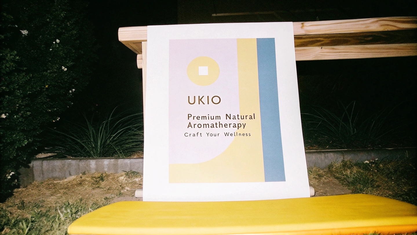 Prompt: Design Spring advertising materials (e.g., fliers, posters, banks) for UKIO infesting the brands modular oil jars and other products. Use the soft collor palette (purple, yellow, blue, neutral tones), minimalist style, and natural effects. Include the UKIO log, product benefits, and taglines like 'Premium Natural Aromatherapy' or 'Craft Your Wellness.' Ensure a cohesive, modern design that highlights the premium and creative nature of the products.