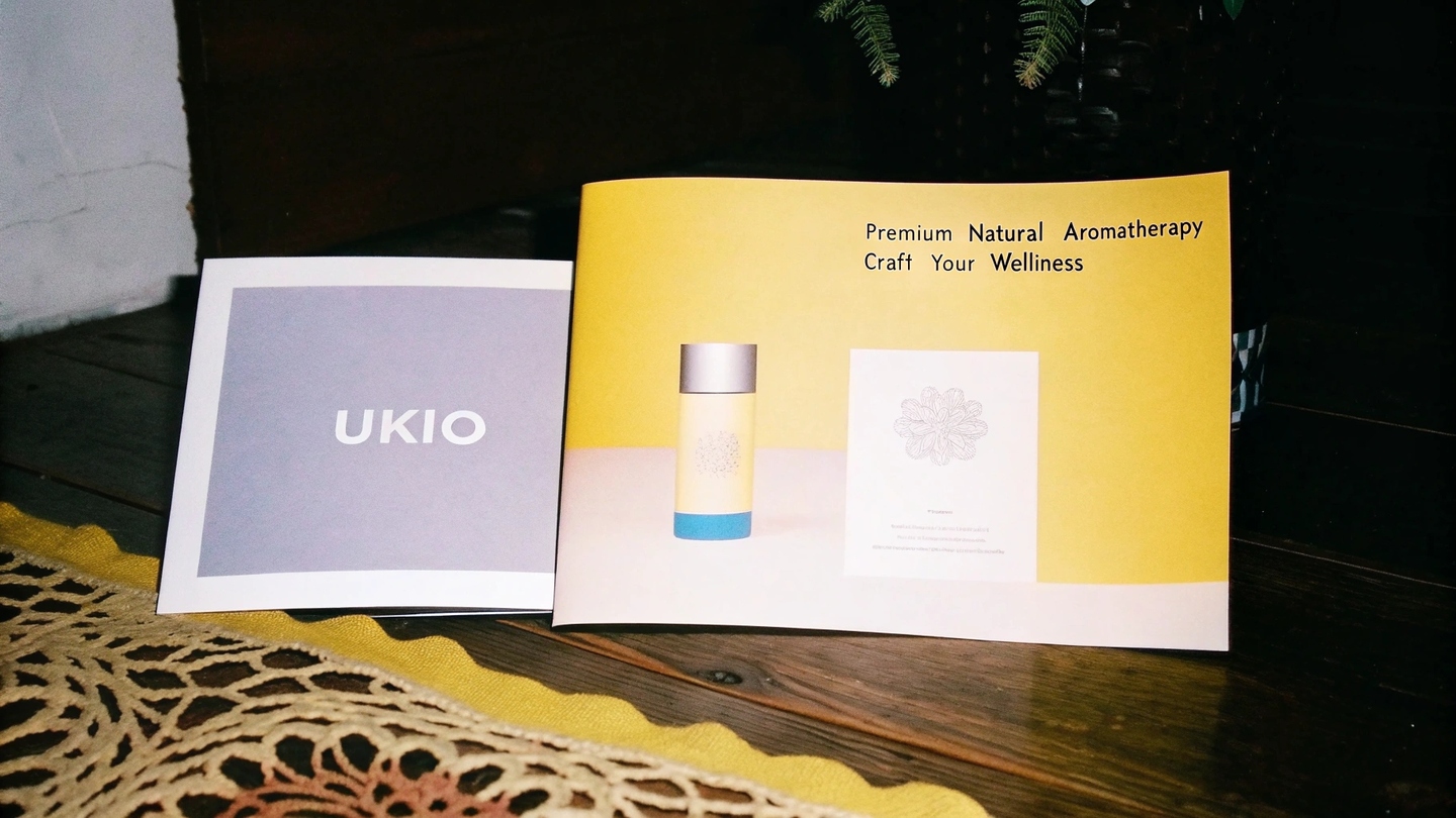 Prompt: Development a comparative and cohesive visibility for a premium Vietnamese brand of natural aromatherapy oils called 'UKIO.' The Brand opportunities on health, creativity, and self-session, with a particular and minimalist aesthetic. The identity sounded in the log, color palette, typography, patterns, and packagin by means of the first general undetailed impt at the first stage of the identical generation, I was able to understand exactly what I want to see next in the identical, and what it has to be — minimalism, plant patterns, brand colours.