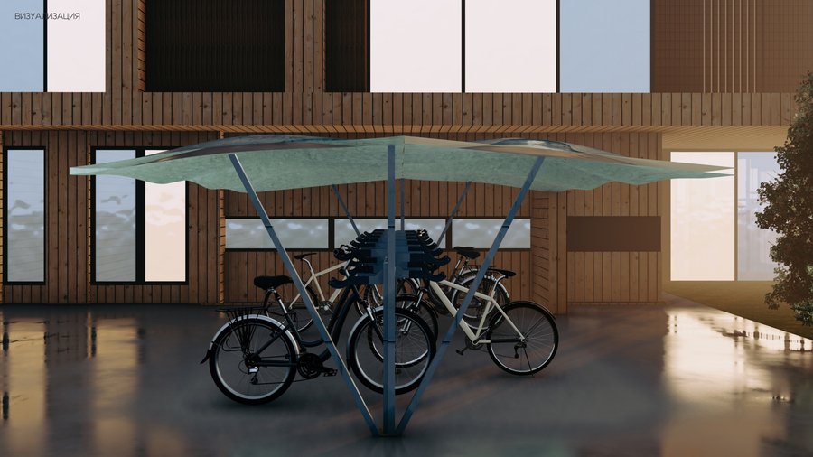 Конструкция велопарковки проста, но при этом она выглядит выразительно и гармонично вписывается в городскую среду, сочетая в себе эстетику и комфорт. Это не просто место для хранения велосипедов, а элемент, который подчёркивает индивидуальность жилого комплекса.