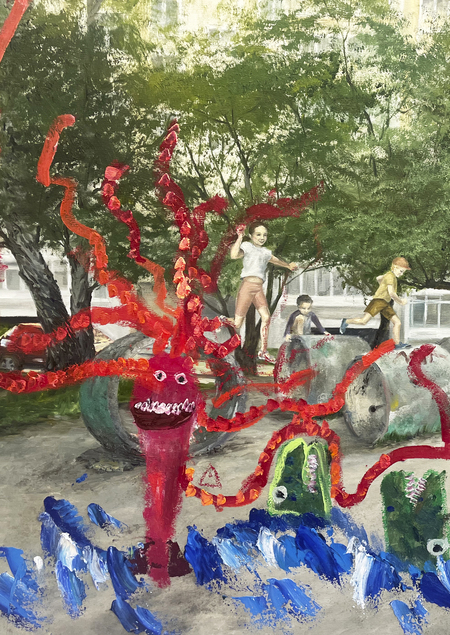 Серия создается в процессе совместного творчества художницы Полины-мамы и ее шестилетней дочки Вероники. Полина пишет каждую картину, опираясь на собственные архивные фото и воспоминания. Затем Вероника вписывает своих сказочных героев в пространство холста.