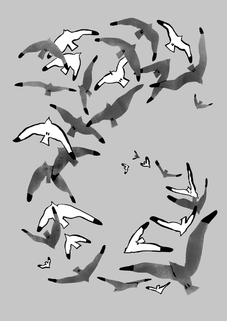Графическая серия посвящена городским птицам. Птицы окружают нас повсюду, настолько, что люди уже не обращают на них внимание.