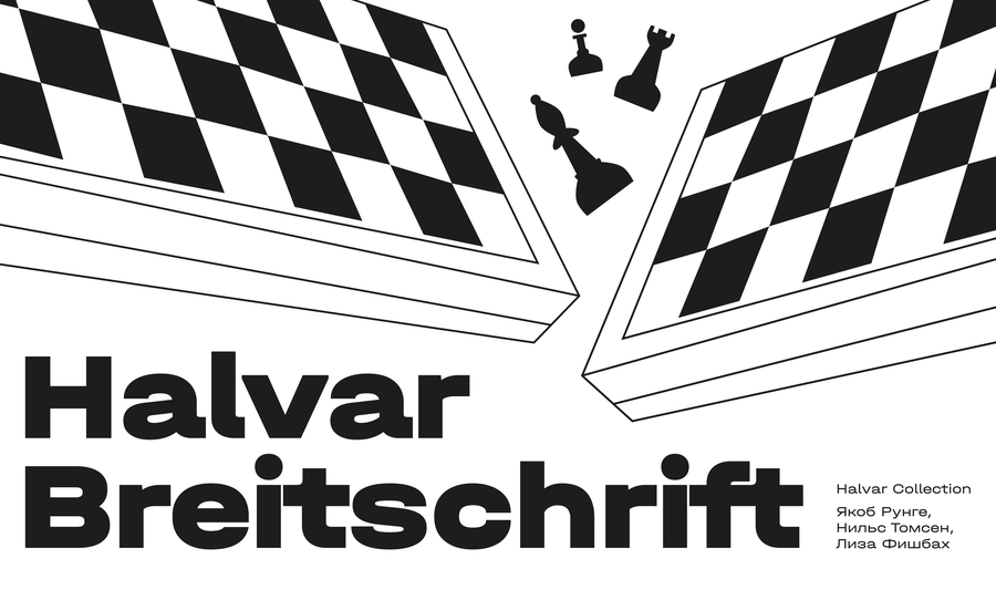 Halvar Breitschrift — это прагматичный гротеск с грубым инженерным шармом, имеет тяжёлые пропорции и точные формы