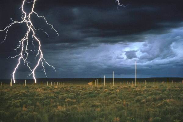 слева направо: Сторм Торгерсон, обложка «Uprising», Muse, 2009; Уолтер де Мария, инсталляция «Поле молний», 1977