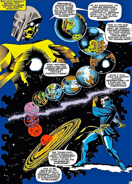 В этой обложке Торгерсон использовал фрейм из комикса Marvel выпуска 158 за 1967 год. Справа изображена часть фигуры доктора Стрэнджа. В выбранном Торгерсоном фрагменте он произносит: «Это ужасное зрелище кажется таким реальным…таким неизбежным… Хотя я знаю, что это всего лишь тень тени… Может быть это потому, что мой мир изрядно устал… и моя мистическая борьба обречена на провал?»