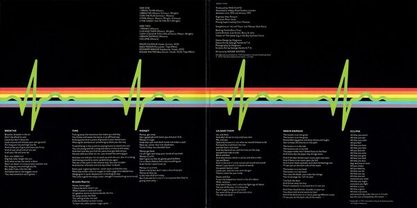 Минималистичное оформление обложки альбома «The Dark Side of the Moon» нетипично для Hipgnosis. На ней сквозь призму проходит луч света, раскладываясь на цвета радуги. Внутри конверта зеленая линия имитирует биение сердца, которое звучит в музыкальной составляющей альбома. Так в оформлении обложки воплощена встреча света и звука.
