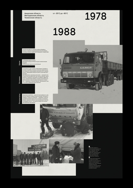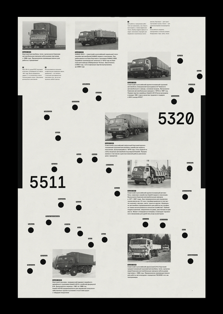 (1) Хронология событий (2) Визуальный язык КамАЗа (3) Испытательный маршрут (4) КамАЗ на Севере