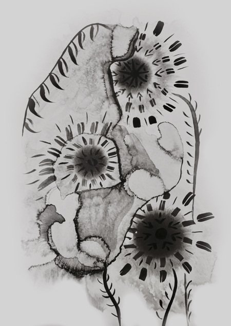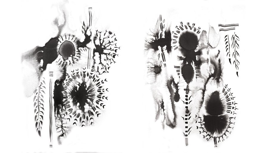 Меня особенно увлекла техника рисования водой. Было завораживающе наблюдать, как изначальный хаос невнятных пятен постепенно обретал строгую симметрию, наполненную символическим смыслом. В этом переходе от беспорядка к гармонии был для меня особый отклик.