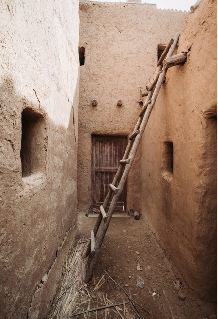 Деревянные лестницы и балки создают сухую фактуру, штукатурные элементы — зернистую поверхность.