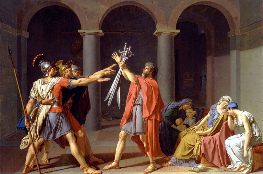 Эжен Делакруа «Смерть Сарданапала» 1827\ Жак-Луи Давид «Клятва Горациев» 1784\ Уильям Тёрнер «Невольничий корабль» 1840