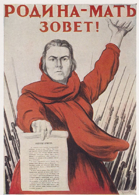 Ираклий Тоидзе «Родина-мать зовёт!» 1941\ Неизвестный художник «Дай качество!» 1931