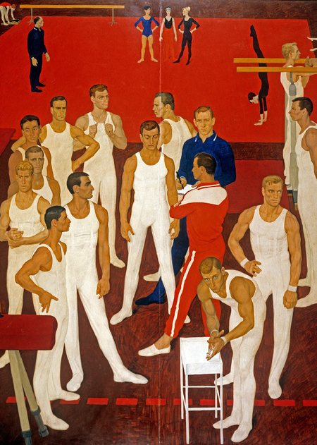 Дмитрий Жилинский «Гимнасты СССР» 1964—1965\ Николай Терпсихоров «Первый лозунг» 1924