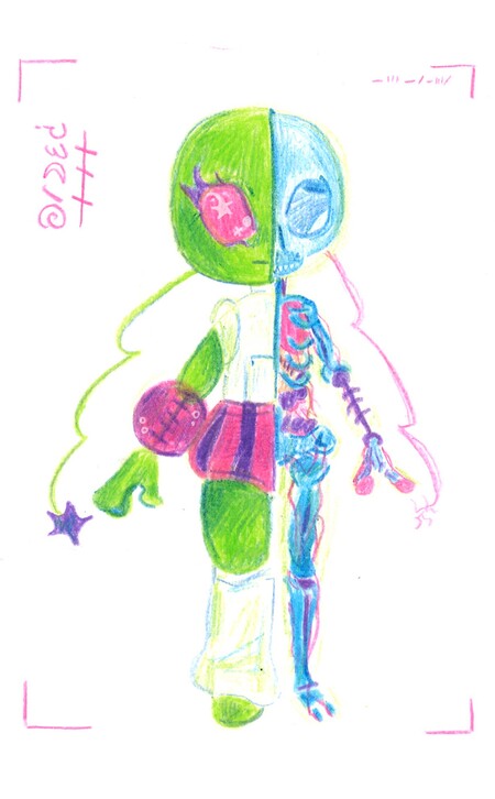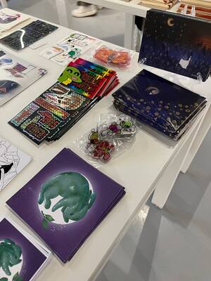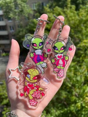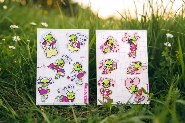 В конкурсе я участвовала с серией работ, приуроченной к празднику середины осени. В китайской мифологии Чаньэ — это богиня Луны. Инопланетный образ, хоть и современный, как фантазия на тему того, как может выглядеть существо, живущее на Луне. Это как альтернативная интерпретация персонажей мифа, перенесённая в современные представления о внеземных цивилизациях. Серия состоит из двух видов стикерпаков, трех брелоков, Для витрины организаторами был отобран и предоставлен на витрине мой мерч: стикерпаки и брелоки.