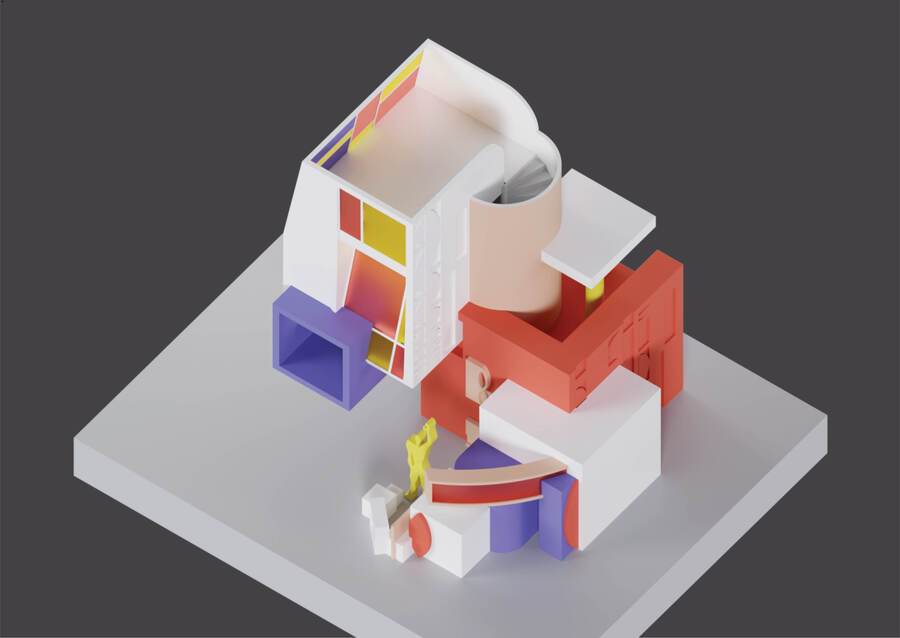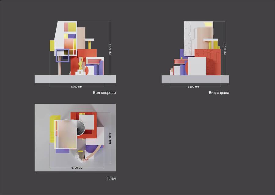 Мой арт объект отражает одну из его основных идей — человекоцентричность. Множество объектов, характерных творчеству Корбюзье, переплетаются вместе, образовывая в плане спиралевидную композицию ведущую к человеку, представленному в виде модулора.