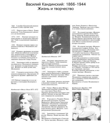Василий Васильевич Кандинский (1866–1944) — русский художник и теоретик искусства, один из основателей абстракционизма. Родился в Москве, учился в Германии и Франции.