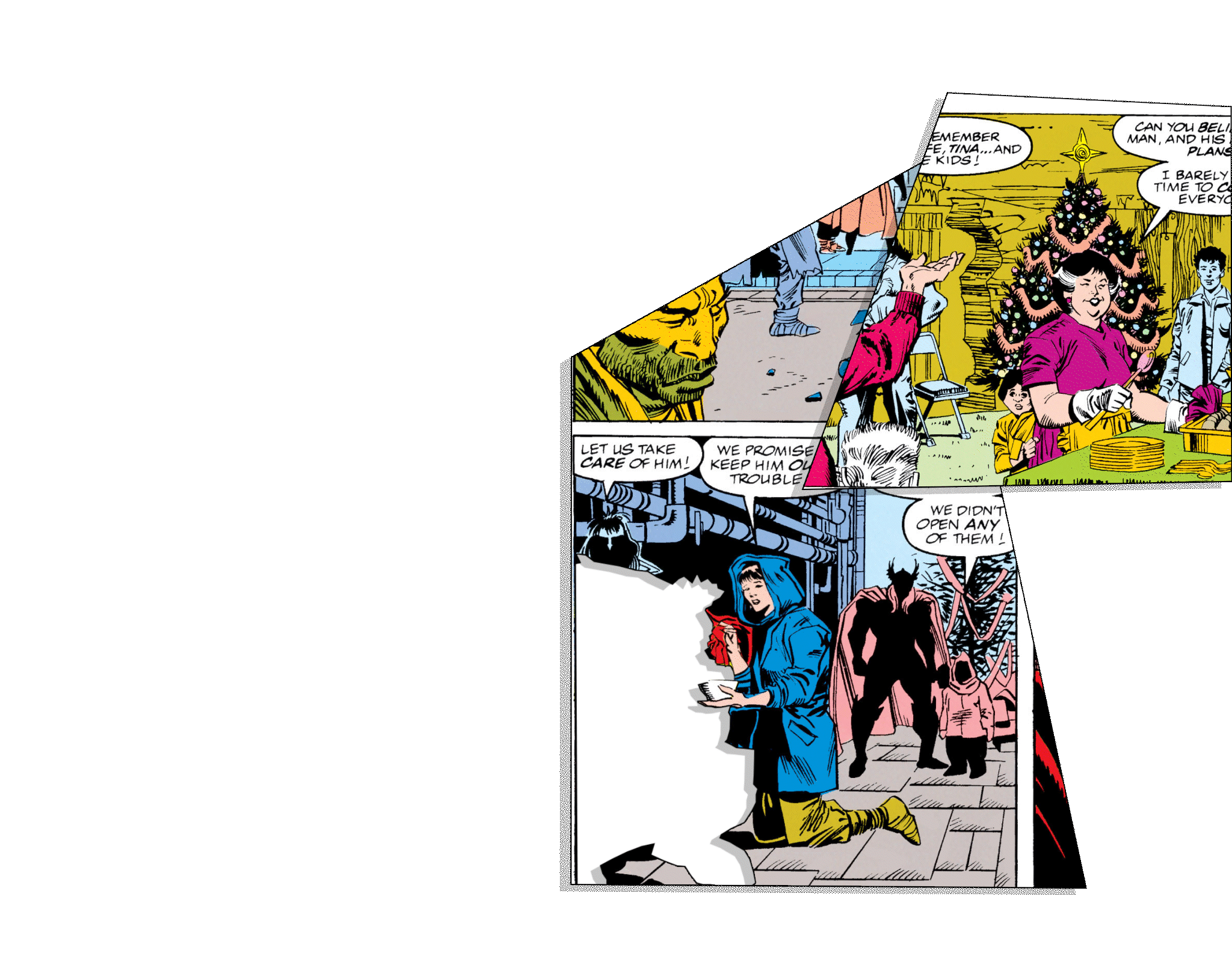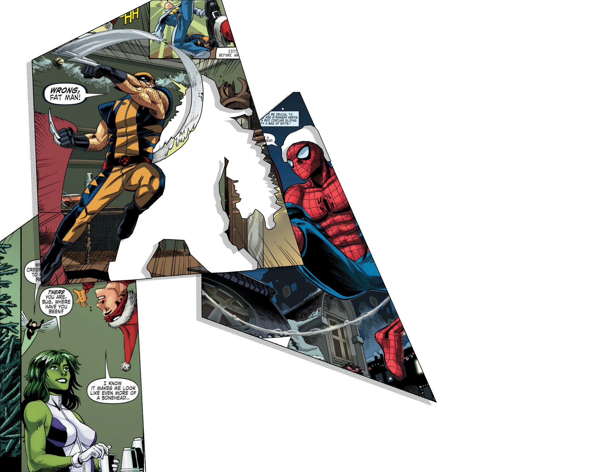 Выясняется, что цель «эльфов» — не просто грабёж. Они планируют устроить катастрофу, устроив мощный взрыв, чтобы их «жертва» привлекла внимание древнего «рождественского демона». Выпустив когти, Росомаха пробивается через охрану сектантов, действуя в тесных торговых залах и на украшенных гирляндами лестницах. Бой жесток и хаотичен, контрастируя с праздничным убранством магазина.