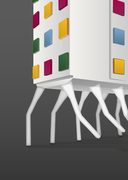 Арт объект вдохновлен марсельской «жилой единицей» Ле Корбюзье и исследует взаимодействие человека с архитектурой через звук, движение и свет, превращая здание в участника диалога. Проект переосмысляет образ «дома-машины» художника и переносит ее в контекст интерактивного искусства.