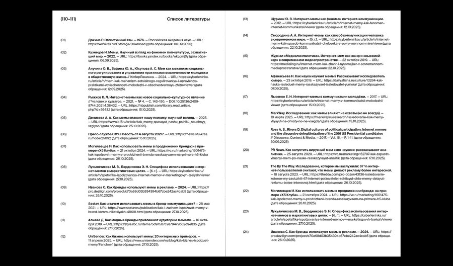 «Мы или не мы?»: искусство использования мемов в маркетинге [Электронный ресурс] / … // Sostav. — 23 июня 2024. — Режим доступа: https://www.sostav.ru/publication/mems-68447.html (дата обращения: 19.10.2025).