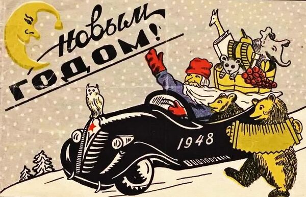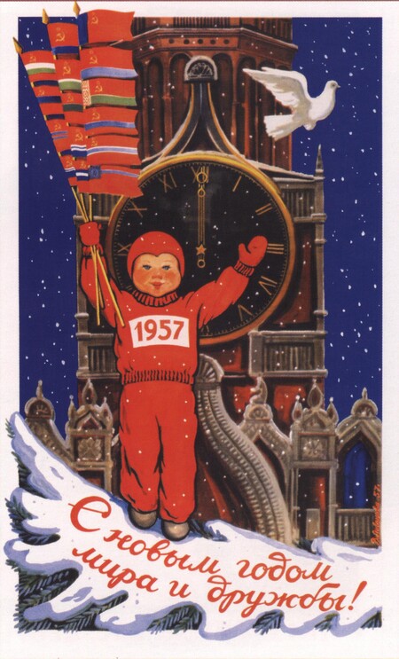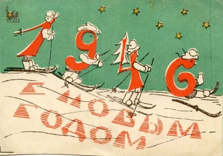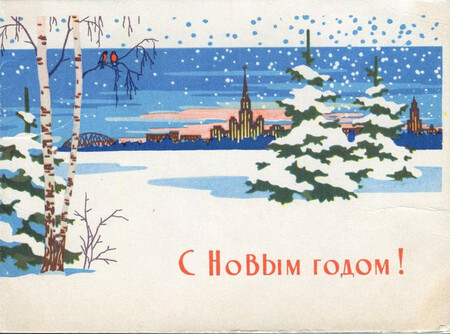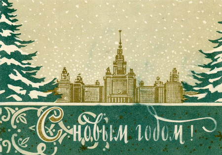 Тем не менее, уже к концу 1940-х годов появляется тенденция возвращения к более нейтральным и праздничным мотивам: на открытках появляются изображения заснеженных зданий, Кремля, новогодних часов, символов зимнего торжества. Это отражает постепенное восстановление страны, желание возродить традицию Нового года как светского праздника, и подготовку почвы для дальнейшей «домашней», бытовой визуальной культуры праздника.
