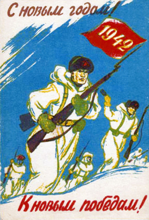 В годы войны и сразу после неё новогодние открытки используются как средство моральной поддержки и идеологической мобилизации. После начала Великой Отечественной войны в 1941 году массовое производство поздравительных открыток возобновилось: власти считали, что открытка способна поднять боевой дух солдат и сохранить связь между фронтом и тылом.