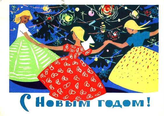 Новогодняя открытка, 1960 год; Открытка «С Новым годом», 1962 год