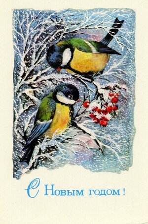 Поздравительная открытка СССР «С Новым годом», худ. Т. Кузнецова, 1986 год; Почтовая открытка СССР «C Новым годом», худ. В. Зарубин, 1983 год