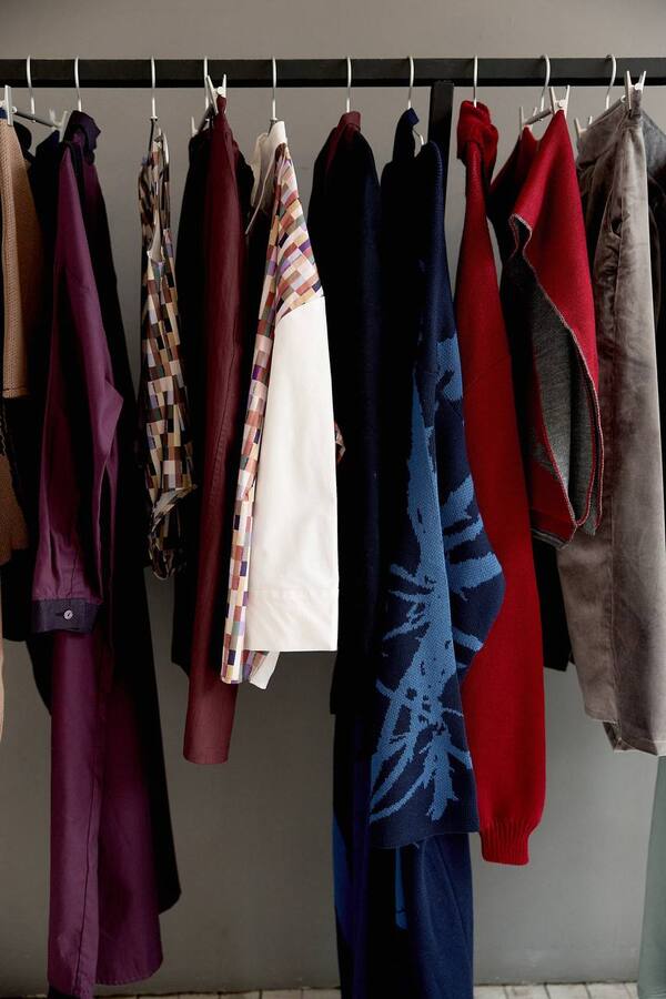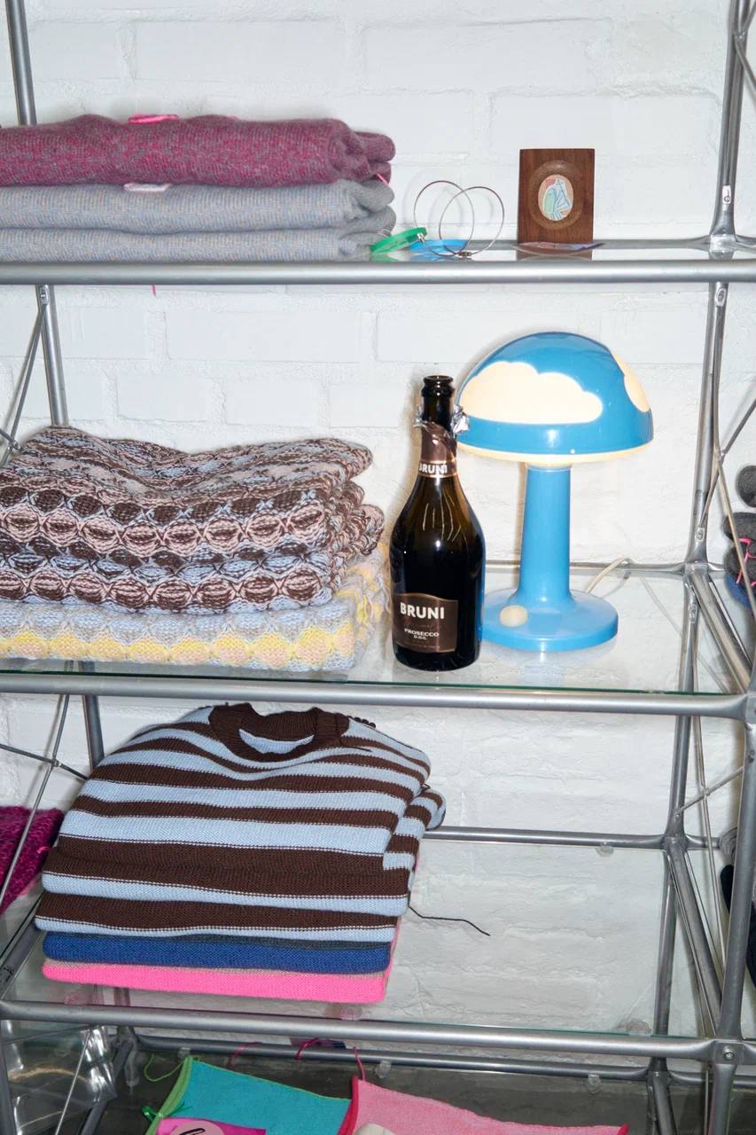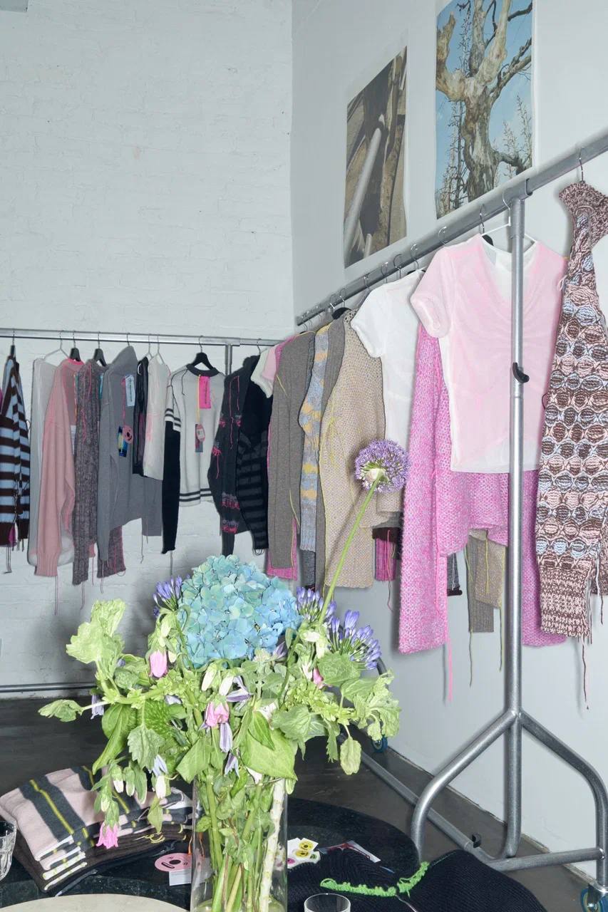 Пространство стало домом для вязаных героев марки: кардиганов с «волосами», пэчворк-шарфов и джемперов со швами наружу.