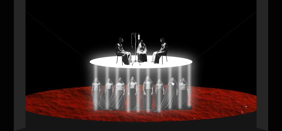 В основе визуального решения лежало изучение античной литературы и философских трактатов. Это привело к концепции выражения трагедии через синтез эстетического и медицинского катарсиса. Опираясь на определение трагедии, данное Аристотелем как «подражание действию важному и законченному… совершающее посредством сострадания и страха очищение подобных аффектов», был создан минималистичный, «болезненный» и кровавый визуальный стиль в современном прочтении. Исследование медицины Древней Греции вдохновило на идею погружения героев в водную среду, символизирующую смешение четырёх жидкостей в соответствии с гуморальной теорией.