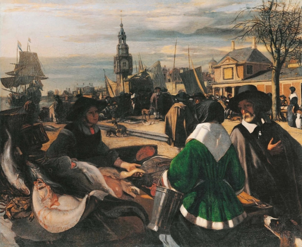Гертген тот Синт-Янс в «Оплакивании Христа» следует религиозной традиции, характерной для Северного Возрождения, где основное внимание уделялось духовным сюжетам. В то время как «Рынок в порту» Манюэля де Витте отражает изменения, произошедшие в голландском искусстве XVII века, когда интерес к повседневной жизни, жанровым сценам и пейзажам возрос вследствие роста буржуазии и увеличения богатства, связанного с торговлей и колониальной деятельностью.