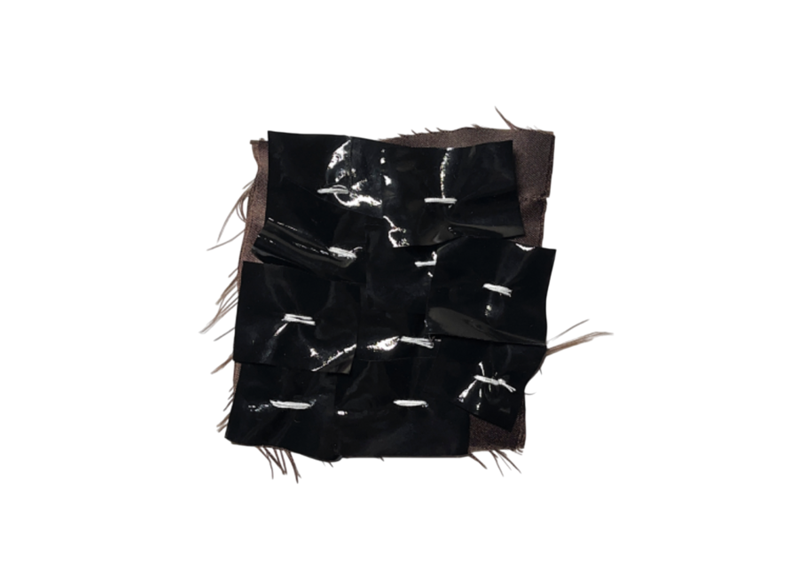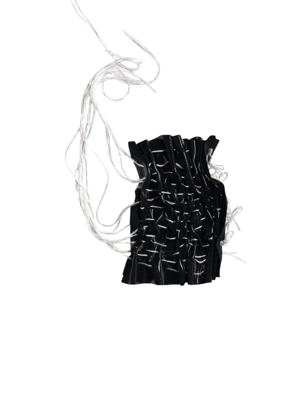 Поэтому я подумала про отражение этого объёма на ткани, напоминающую металлопластику