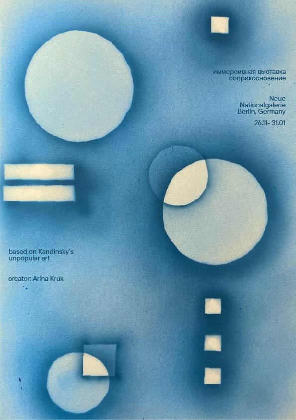 Серия «Прикосновение» посвящена сенсорности некоторых картин Кандинского. В плакатах мне хотелось передать ощущение тактильности, телесности и чувственности — момента, когда происходит соединение зрителя и полотна