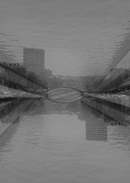 Мост один из древнейших символов перехода между мирами. Благодаря технологии двойной экспозиции и несистематизированным переворотам камеры во время съемки мне удалось достроить отражение водной глади под мостами до такой степени, что нельзя доподлинно определить какая часть кадра первична, а какая рефлекторна.