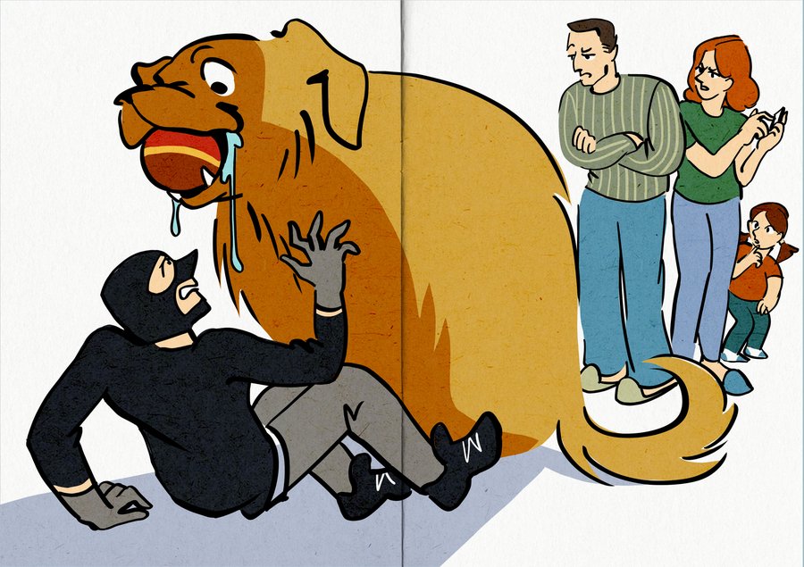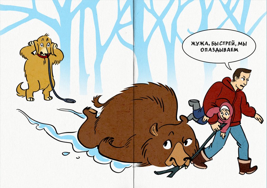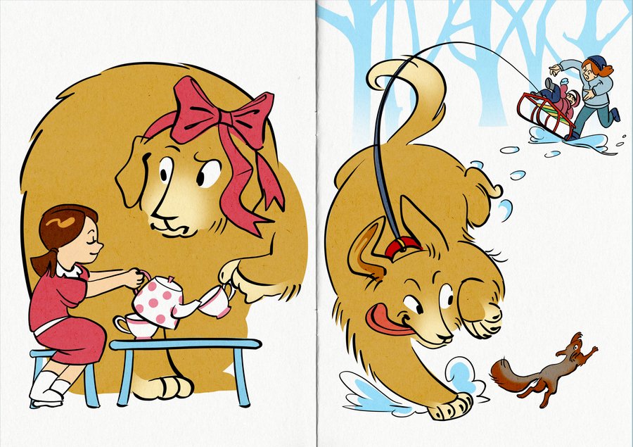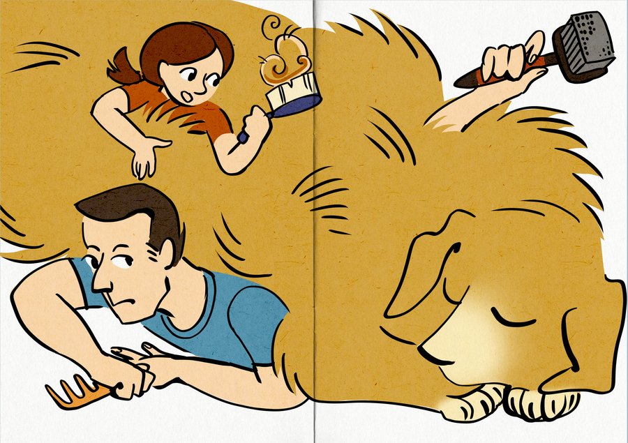 Нередко в семьях с домашними животными происходят забавные, глупые и абсурдные ситуации, сложно их избежать, когда ваш любимец является огромной пушистой собакой. Именно такая семья показана в серии однокадровых комиксов, где собака является формообразующем элементом. Связанно ли её центральное место с её огромными размерами, которые иногда сложно игнорировать, а может непосредственность и дружелюбие являются главными ценностями этой семьи, символом которых становится их любимец.